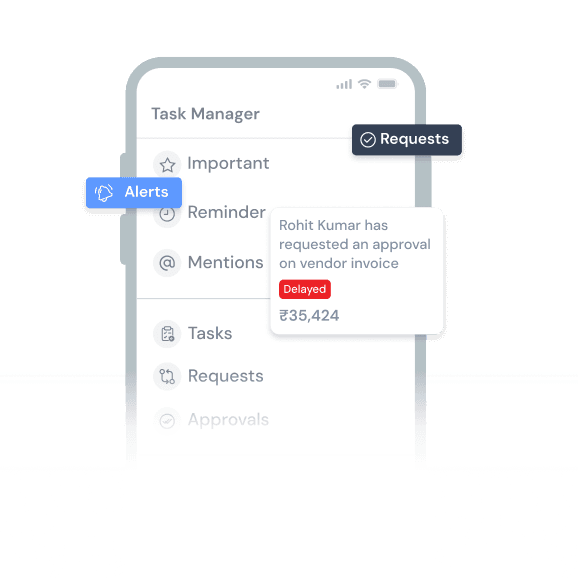 Setup approval workflows in Order, Invoices, Purchase Requests, Expense Requests, and Payment Requests. Approvals are linked to task manager.