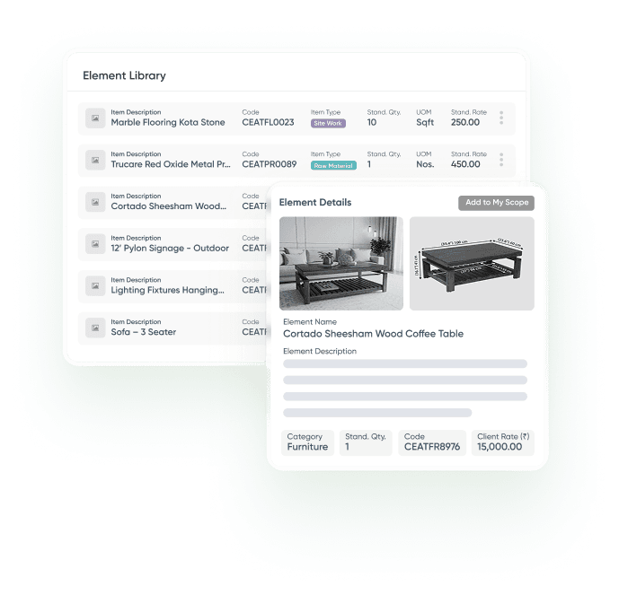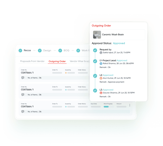 Create a master catalogue of items for creating BOQ, Orders, and Rate-Contracts. Share catalogue with clients and vendors. Vendors can create scope of work by picking items from your catalogue which auto-converts into a PO post approval.