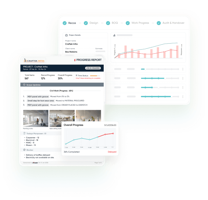 From survey to designs, BOQs to vendor allocation, office-to-site and planning to handover – all teams can now collaborate on a single platform and deliver projects faster, under budget everytime!